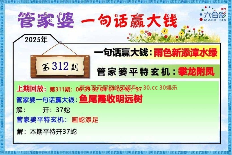 | 312期六肖 | 猴羊猪龙马蛇 | 龙14中 |