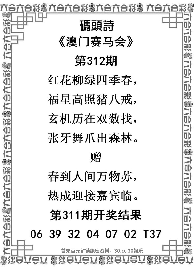 | 311期七肖 | 猪鸡龙猴羊虎蛇 | 蛇37中 |