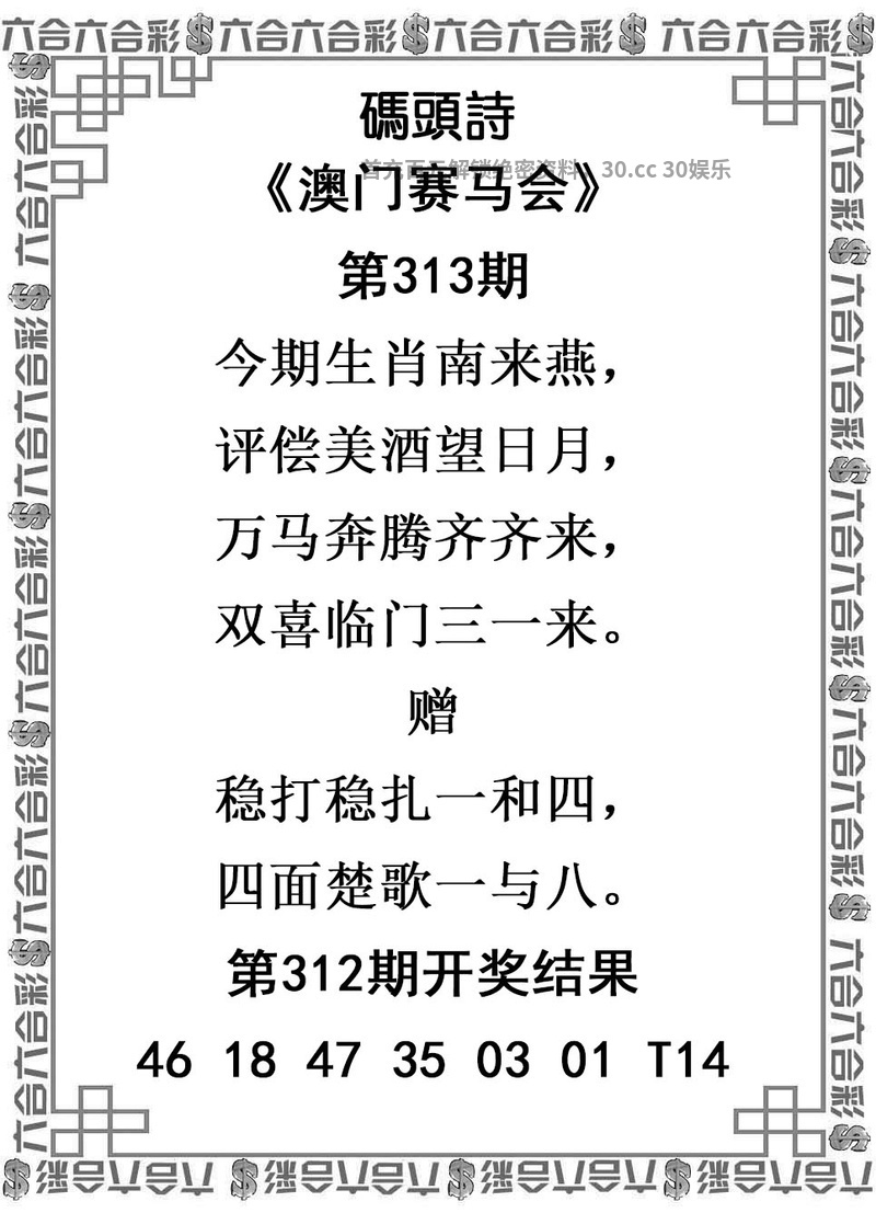 | 312期五肖 | 猴羊猪龙马 | 龙14中 |